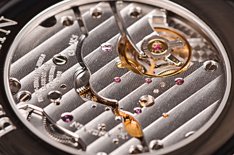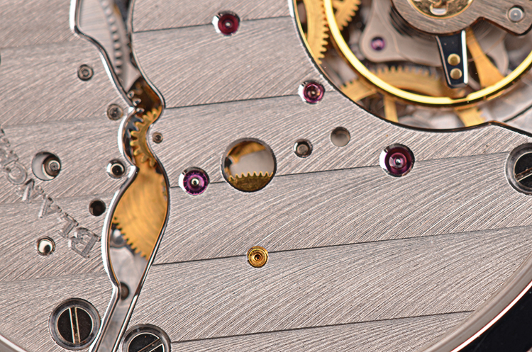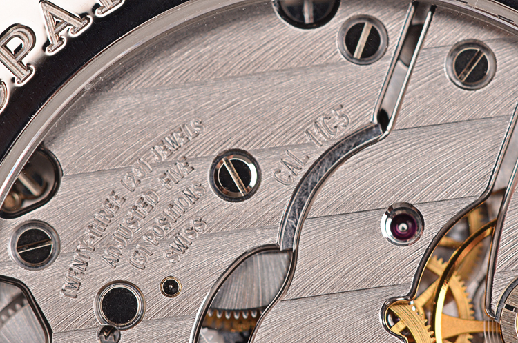 宝珀自产的CAL.11C5机芯,手动上链,极其精致的日内瓦条纹打磨及倒角抛光修饰,由216个零件组成,23钻,摆频21600,动力储存约100小时,四天链。5方位校正。走时状态极嘉。