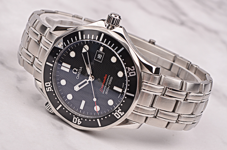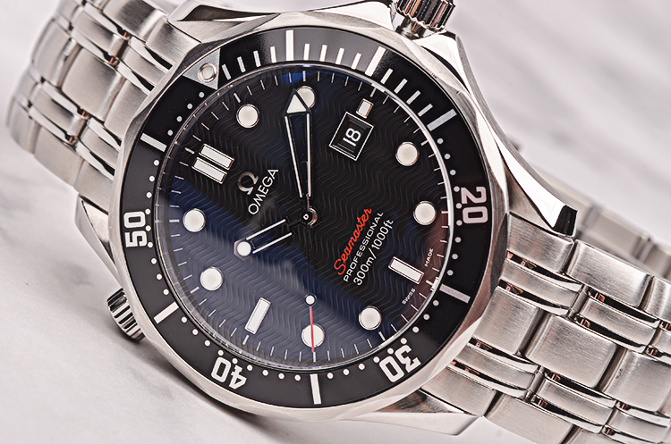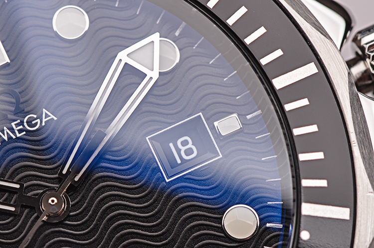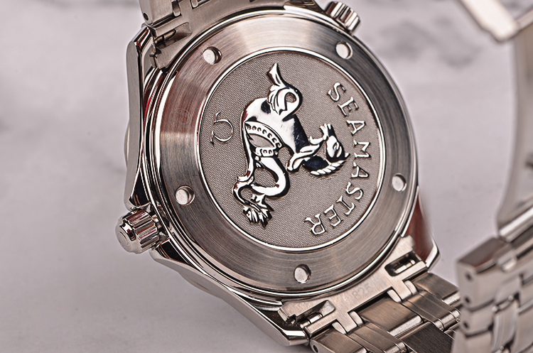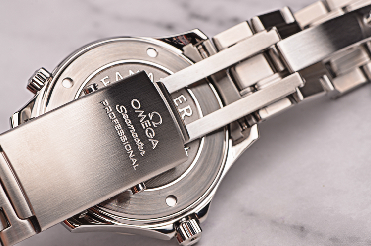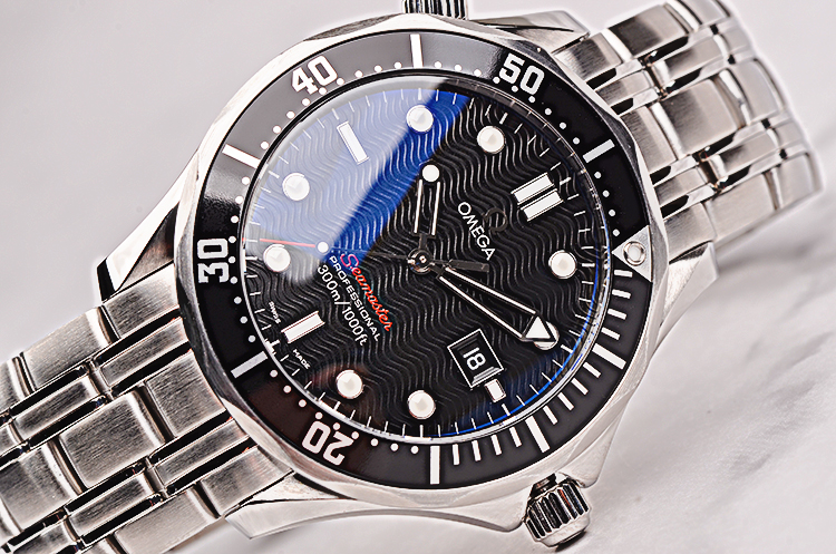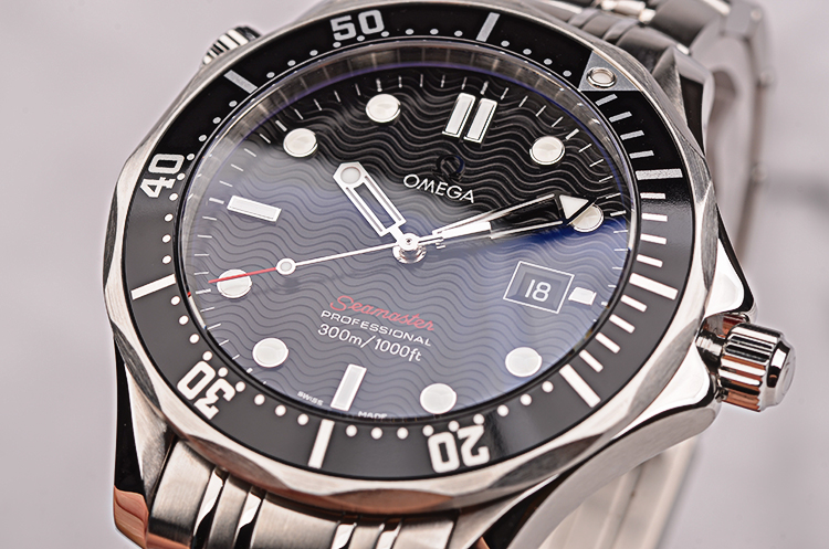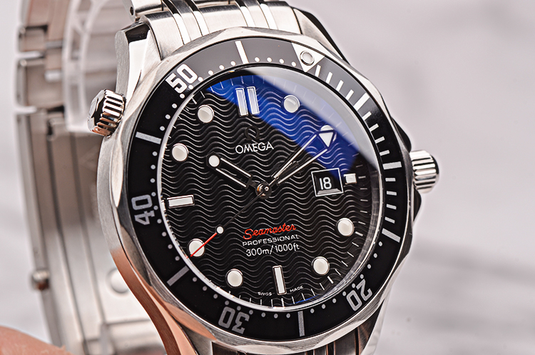 精钢表壳及链带,按压式折叠表扣。黑色单向可旋转计时表圈,蓝宝石水晶镜面,立体黑色波浪纹表盘,夜光镂空指针及刻度,3点位日历显示功能。海马图案底盖,表壳侧面10点位表冠排氦气阀门装置,旋入式防水表冠。口径41MM*12MM,防水300M。