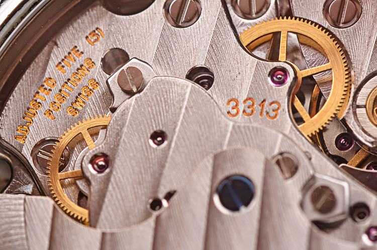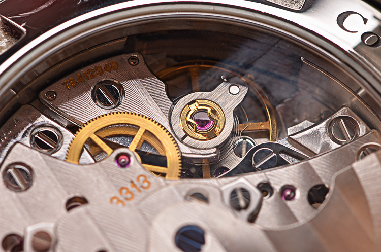 欧米茄CAL.3313型机芯,自动上链同轴计时机芯,天文台认证,配备纵轮计时装置,无卡度游丝摆轮,37钻,摆频28800,动力储备约52小时,走时状态极嘉。