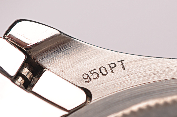 PT950铂金表壳及链带,PT950铂金折叠式表扣,圣伯纳狗头印记。表框原厂镶嵌40颗豪华大钻,10颗钻石时标(其中6、9时位置长条钻),蓝宝石水晶镜面,冰蓝色色电脑面盘,铂金指针,星期,日历显示功能。旋入式防水表冠。口径39MM*13MM。防水100M。