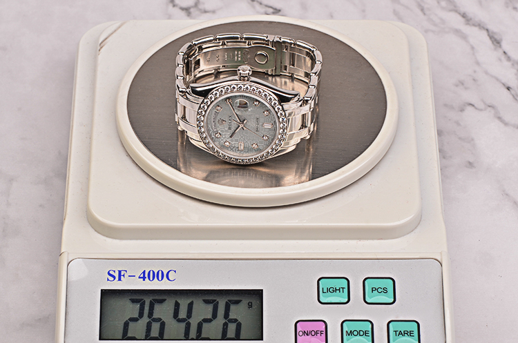 整表98成色新,正常极轻微生活使用痕迹,无明显划痕,无磕碰。指针,面盘均腕美无瑕。原厂底盖膜未撕,12节表链,腕周约190MM,请注意手寸合适才购买。Z字头表。整表重约264克,超过半斤铂金。