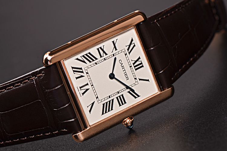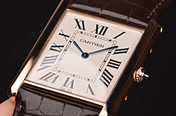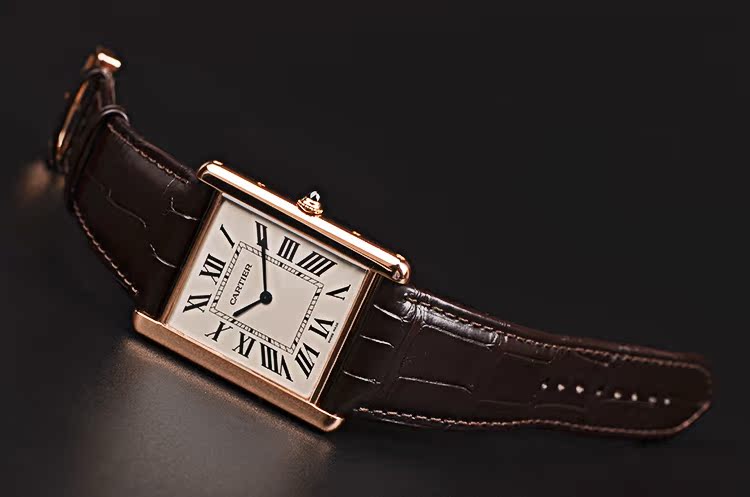 玫瑰金路易斯坦克最大号手上链皮带男表