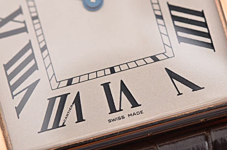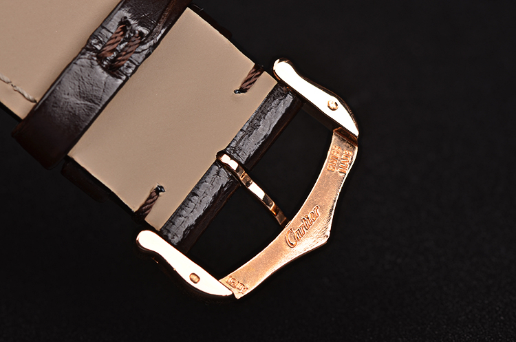 18K玫瑰金表壳及表扣,圣伯纳狗头印记。后配全新棕色鳄鱼皮表带。蓝宝石水晶镜面,立体银白色喷砂表盘,黑色罗马数字刻度,蓝钢指针,口径40.4MM*32.3MM*5.6MM,相当于圆表39MM左右大小,玫瑰金表冠镶嵌一颗蓝色宝石,防水30M。