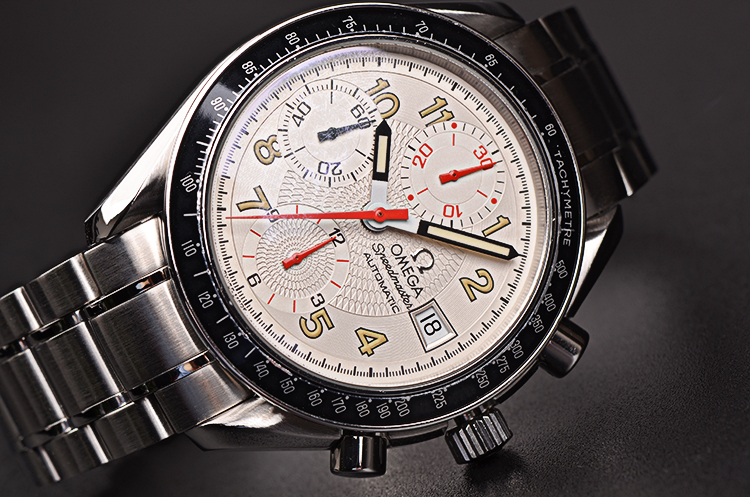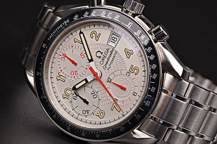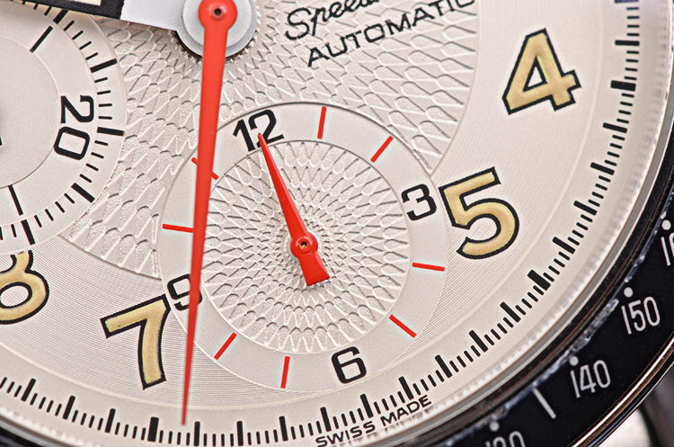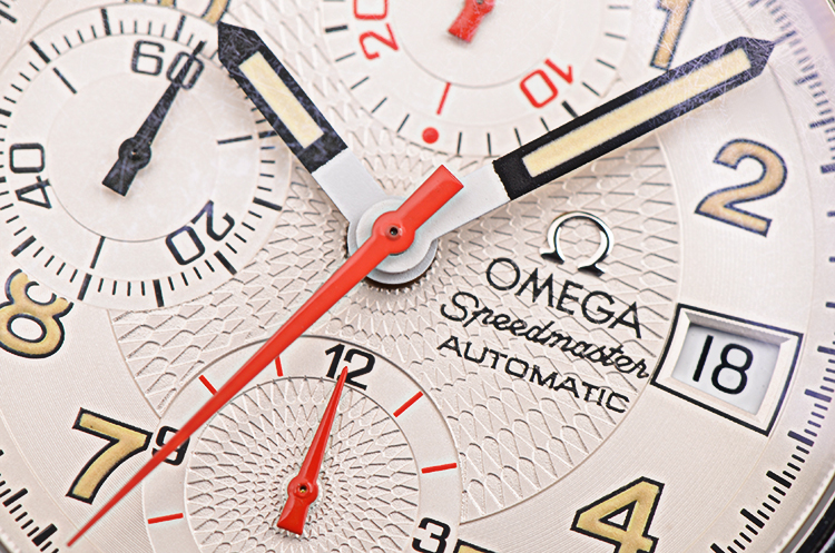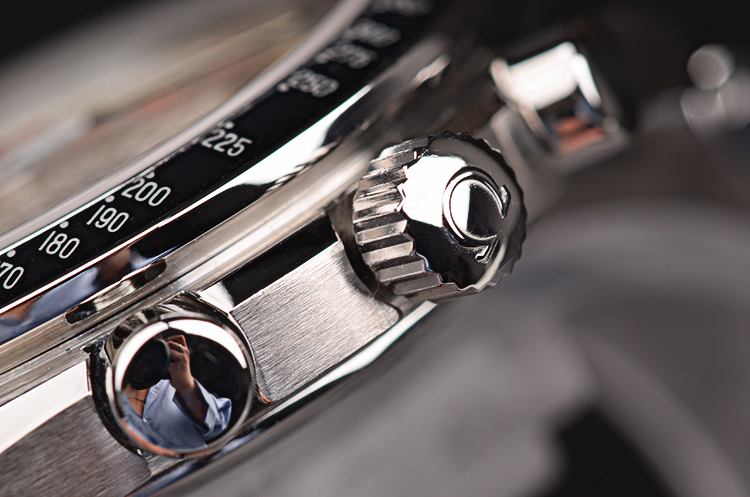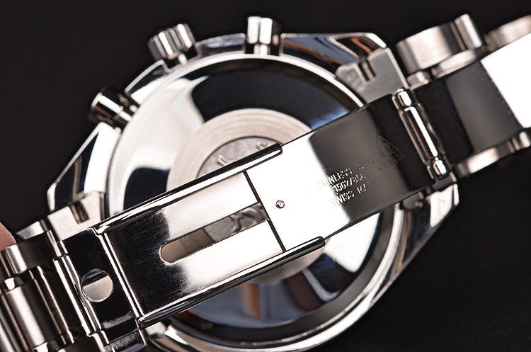精钢表壳及链带,折叠式表扣。蓝宝石水晶镜面,黑色测速表圈。立体白色齿轮花纹计时表盘,夜光时分针及阿拉伯数字刻度,12点位30分钟计时,3点位日历窗口,6点位12小时计时,9点位独立小秒针。海马徽章底盖。口径39MM*13.8MM。防水50M。