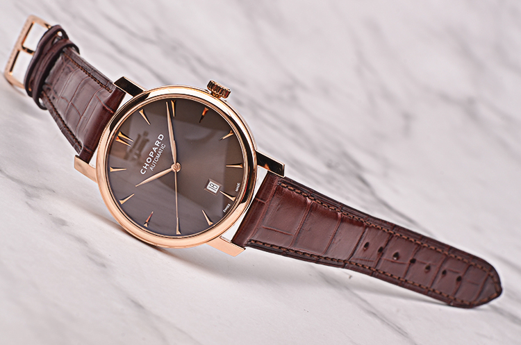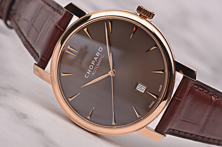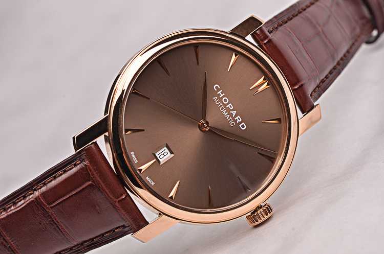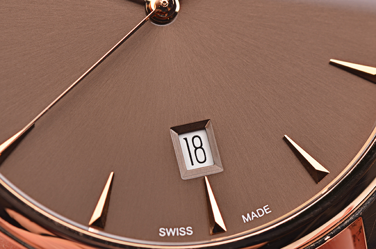 经典系列玫瑰金棕色面大三针日历自动机械皮带男表