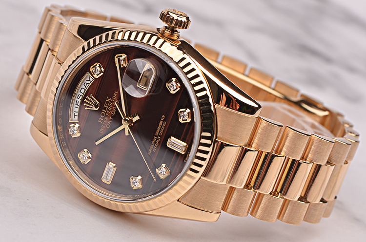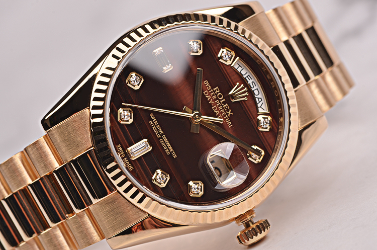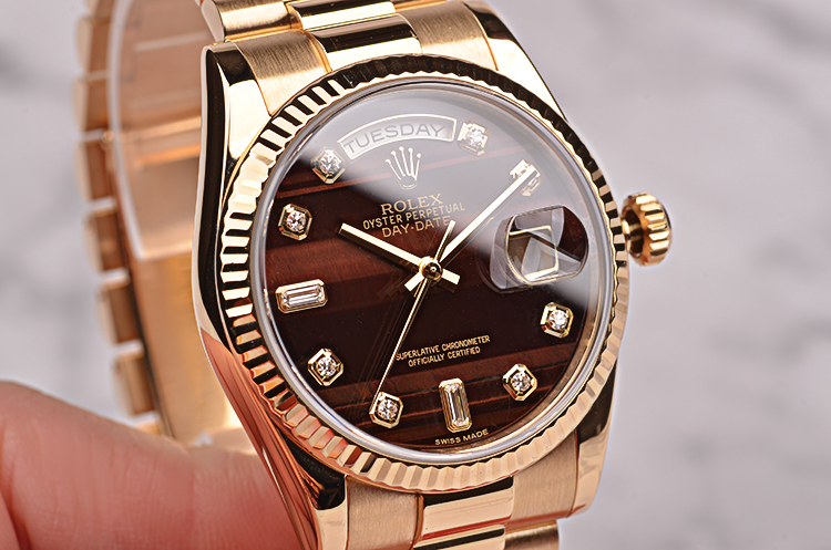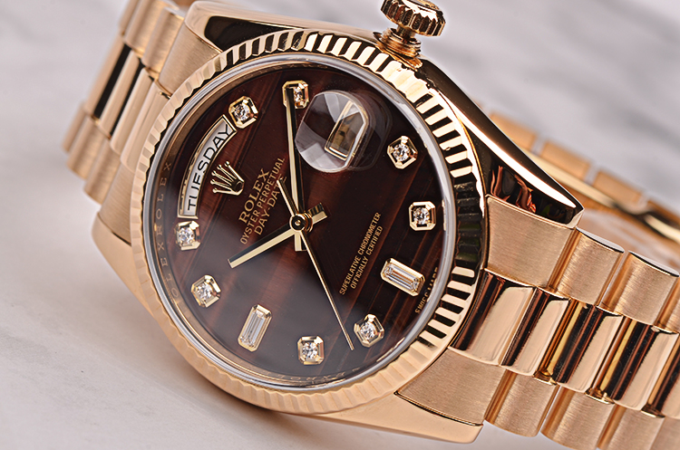 这是Rolex今天的旗箭产品,表迷中把他简单的称之为DD,作为今天耗式恒动产品线中最GAO端的Rolex,DD的外壳全部使用了贵金属,其实从Rolex的历史上看,最早的DD应该是President系列,也就是因为美国总统曾经酷爱佩戴Rolex的全金DD,所以后来此表一举成名。