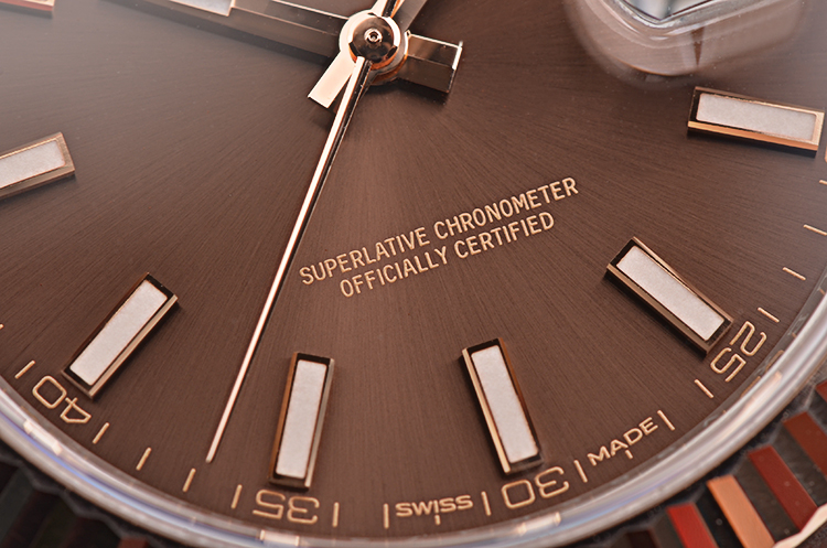 劳力士自产CAL.3235型机芯,自动机械,瑞士天文台认证(COSC)+ 劳力士认证,顺磁性蓝色Parachrom游丝;高性能Paraflex缓震装置,双向自动上链,动力储存约70小时,走时状态极嘉。