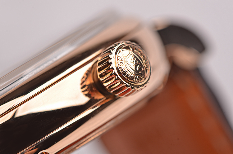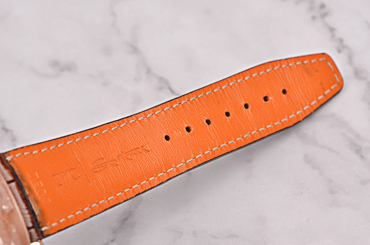 IWC自产的新款CAL.59210型机芯,手上链,极其精致日内瓦条纹打磨,30钻,摆频28800,八天链长动力机芯,5方位校正,机芯有独立签署。走时状态极嘉。
