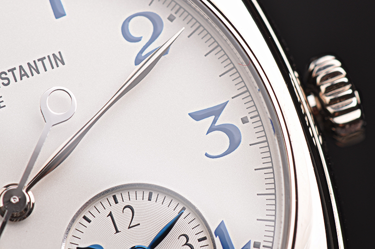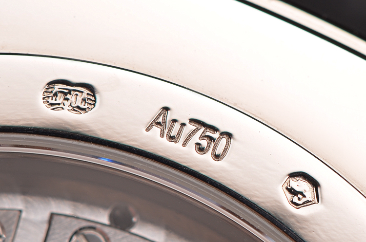 18K白金表壳及折叠式表扣,圣伯纳狗头印记。后配全新深棕色短吻鳄鱼皮表带。蓝宝石水晶镜面及底盖,立体白色表盘,白金时、分、秒针,蓝色阿拉伯数字时标,4点位第二时区显示,8点位第二时区昼夜显示。口径40MM*11.44MM,防水30M。