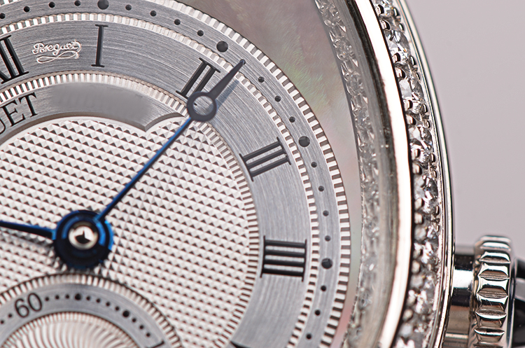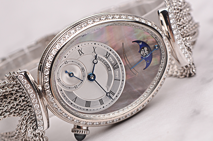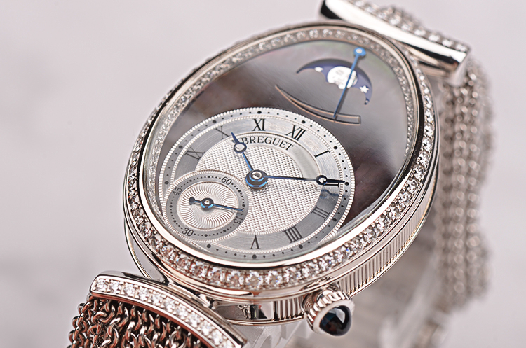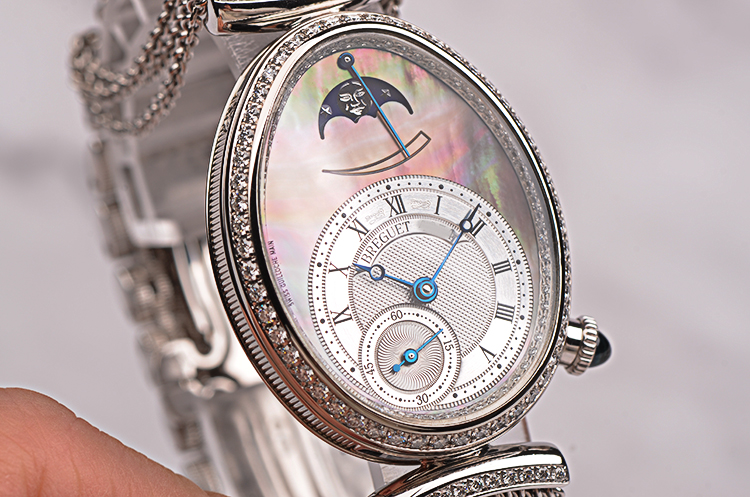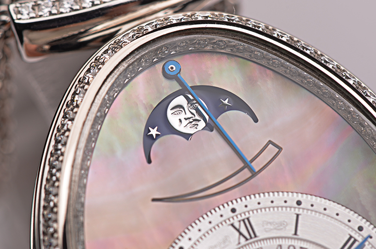 那不勒斯皇后系列白金镶钻贝母盘动显月相自动机械女表