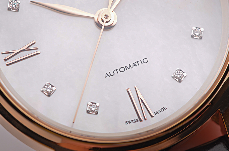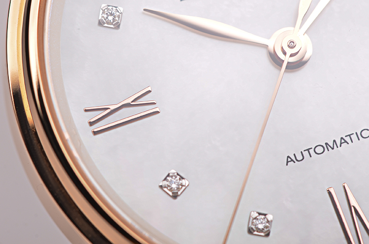 克莱斯麦玫瑰金贝母盘刻度钻大三针日历自动机械皮带女表