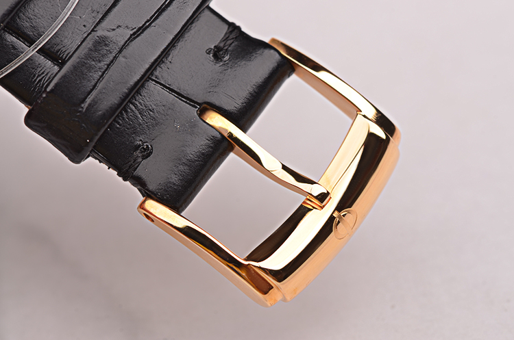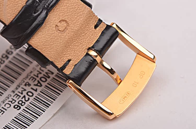 18K玫瑰金表壳及表扣,全新原厂黑色鳄鱼皮表带。蓝宝石水晶镜面及底盖,立体银白色珍珠贝母表盘,玫瑰金太妃指针及罗马数字刻度搭配8颗钻石时标,3点位日历窗口。口径31MM*8.2MM,防水50M。