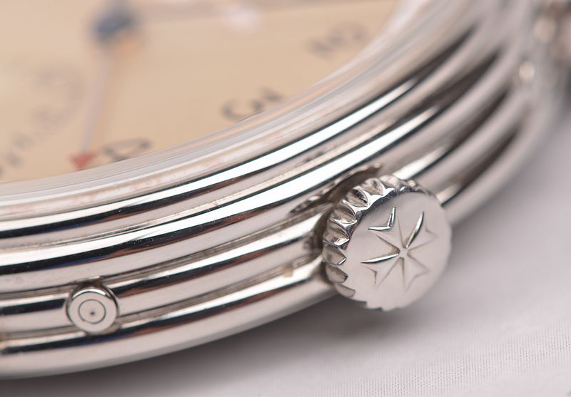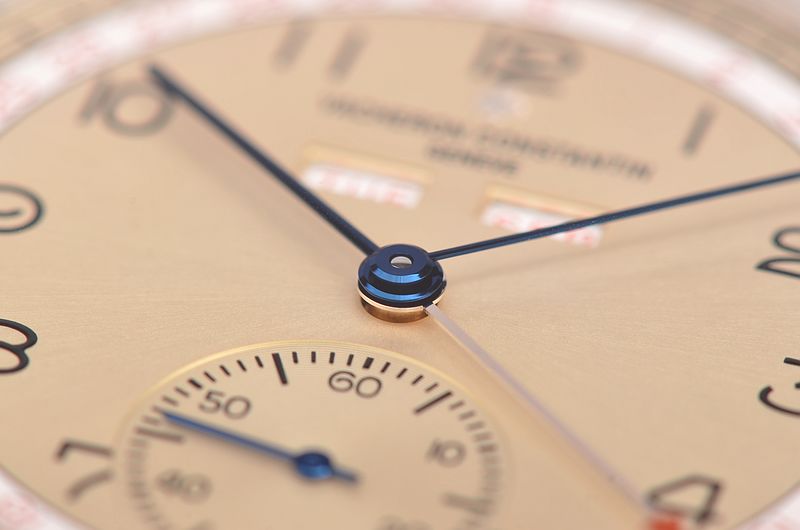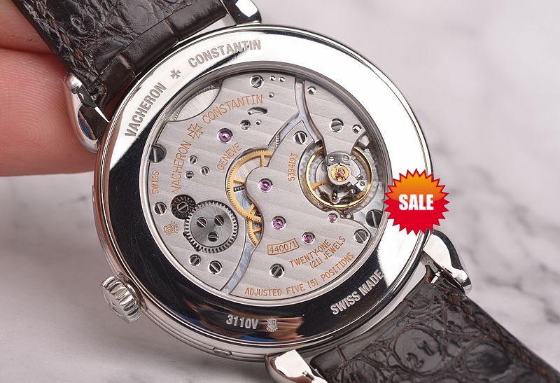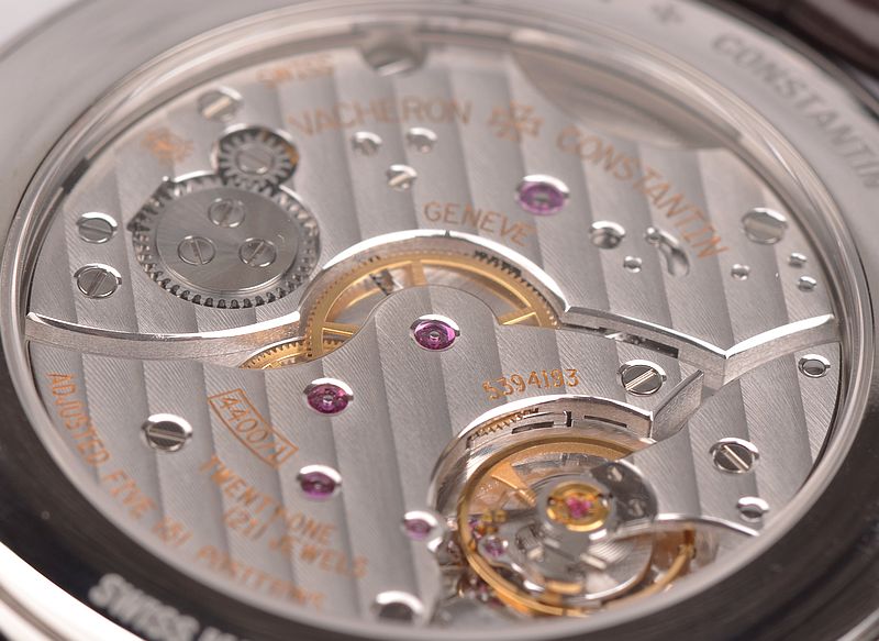 VC自产的CAL.4400/1型机芯,手上链,极其精致日内瓦条纹打磨,倒角抛光修饰,日内瓦印记,由225个零件组成,21钻,摆频28800。动力储存约65小时,走时状态极嘉。