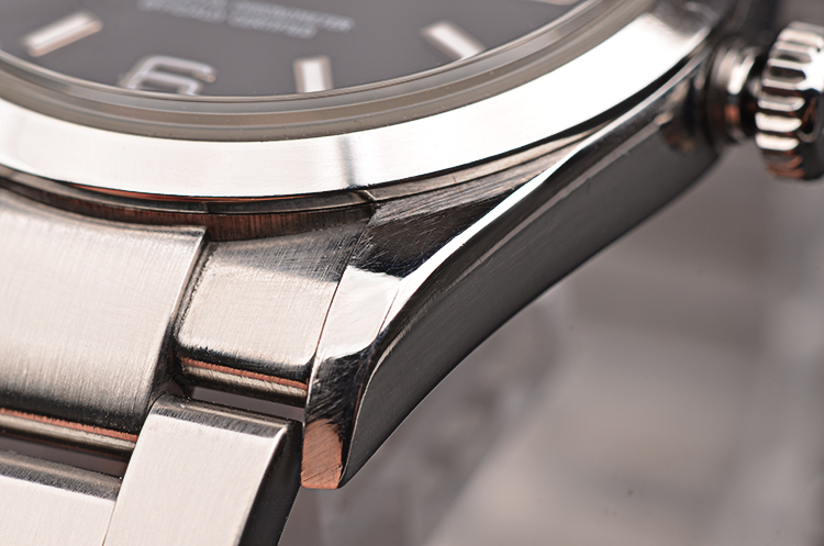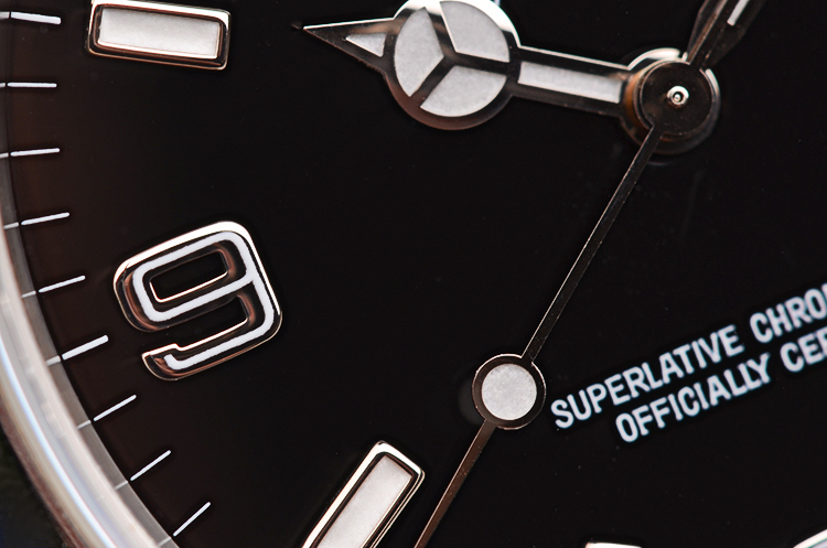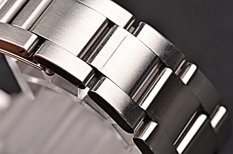 904L精钢表壳及链带,折叠式表扣。蓝宝石水晶镜面,立体黑色表盘,夜光奔驰指针及刻度。旋入式防水表冠。口径36MM*11MM,防水100M。