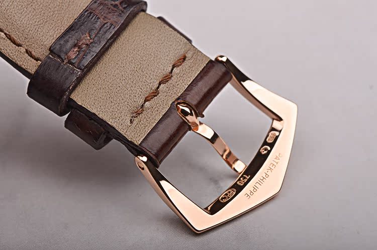 PP自产CAL.215型机芯,手上链,极其精致日内瓦条纹打磨,倒角抛光修饰。由130个零件组成,18钻,摆频28800,镌刻日内瓦印记,动力储存约44小时,走时状态极嘉。