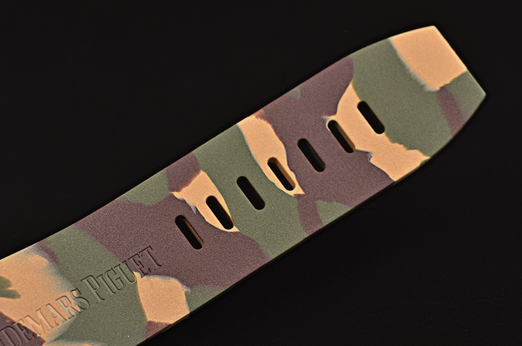 精钢表壳及表扣,迷彩色橡胶表带。绿陶瓷表圈,前后盖白金螺丝。蓝宝石水晶镜面及底盖,米色表盘镌刻“Grande Tapisserie”大型格纹装饰,搭配棕色副表盘,棕色外圈,测速计功能,白金材质夜光立体时标和时分针,12点位独立小秒针,3点位放大镜日历,6点位12小时计时,9点位30分钟计时。绿陶瓷计时按钮,带护桥的绿陶瓷旋入式防水表冠。口径44MM*14.4MM。防水100M。
