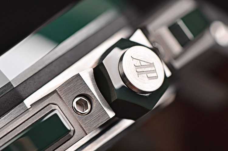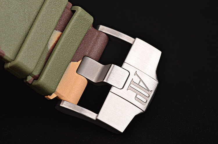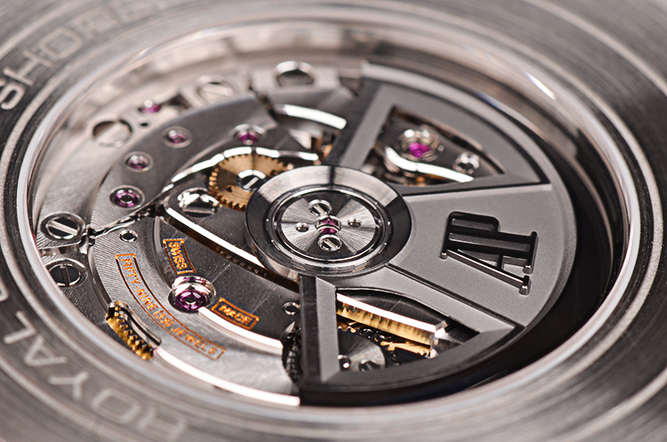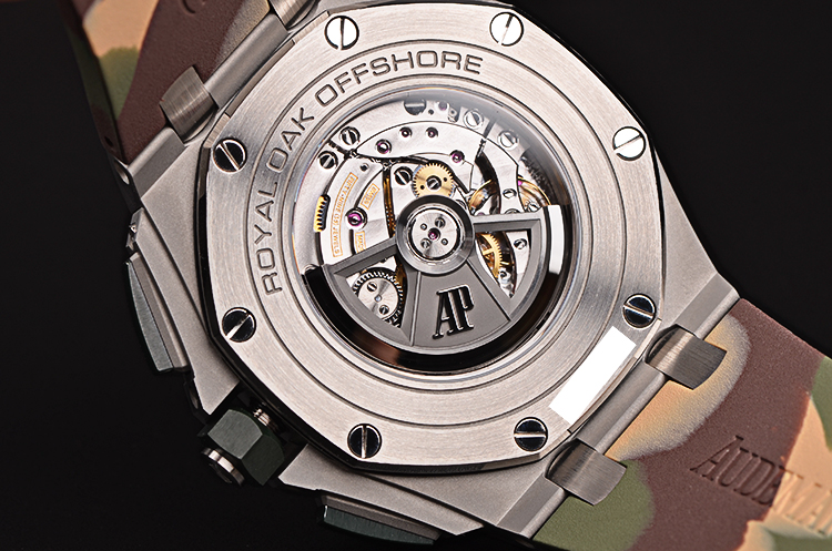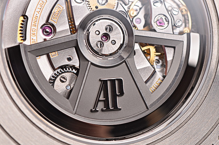 AP自产CAL.3126型机芯,自动机械,极其精致日内瓦条纹打磨,倒角抛光修饰。由365个零件组成,59钻,双向上链,摆频21600,KIF避震器,动力储存约60小时。品牌LOGO镌刻镂空自动转陀。