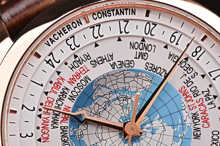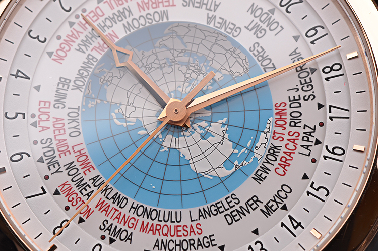 此枚腕表可显示全球37个时区的时间,正装与休闲皆宜,好一个隐藏于袖口的微观世界。