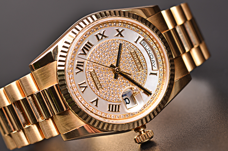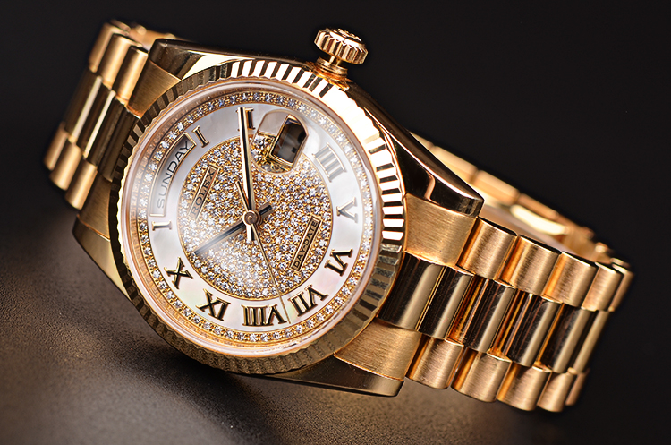 这是Rolex今天的旗箭产品,表迷中把他简单的称之为DD,作为今天耗式恒动产品线中最GAO端的Rolex,DD的外壳全部使用了贵金属,其实从Rolex的历史上看,最早的DD应该是President系列,也就是因为美国总统曾经酷爱佩戴Rolex的全金DD,所以后来此表一举成名。