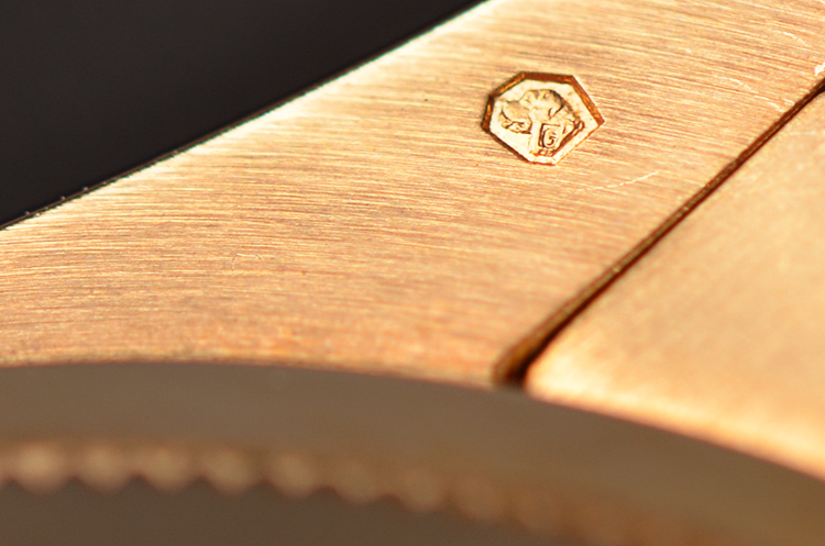 奢华的18K全黄金表壳及链带,专利隐藏式折叠表扣。圣伯纳狗头印记。蓝宝石水晶镜面,黄金三角坑纹表圈,稀有立体银白色珍珠贝母镶钻面盘,黄金指针及罗马数字刻度,旋入式防水表冠。口径36MM*11MM。防水100M。