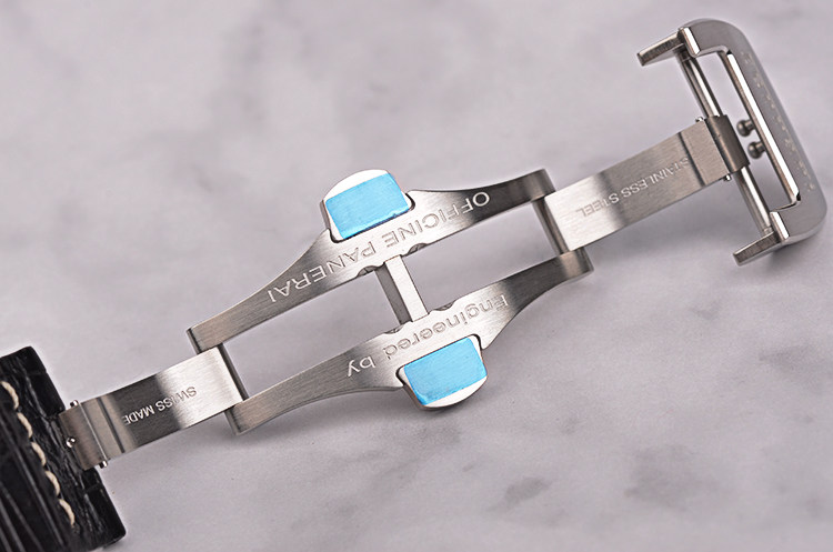 沛纳海OP VIII型机芯,自动机械,精致日内瓦条纹打磨,21钻,摆频28800,动力储备约42小时,走时状态极嘉。