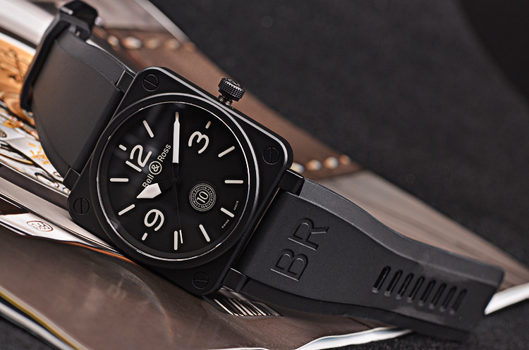 BR01系列十周年限量版黑陶瓷及钢大三针自动机械胶带男表