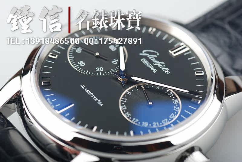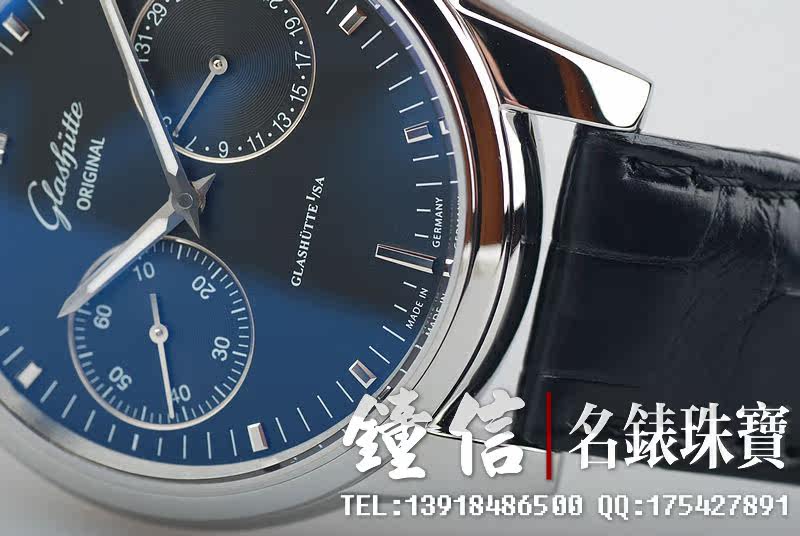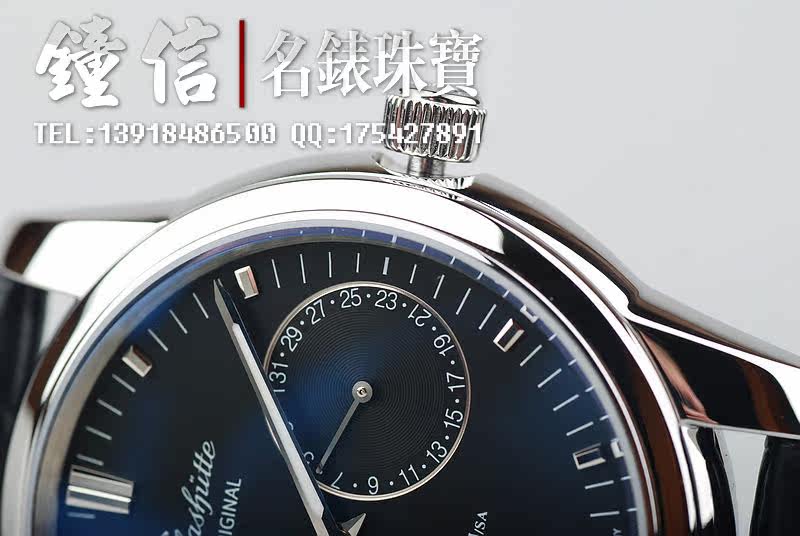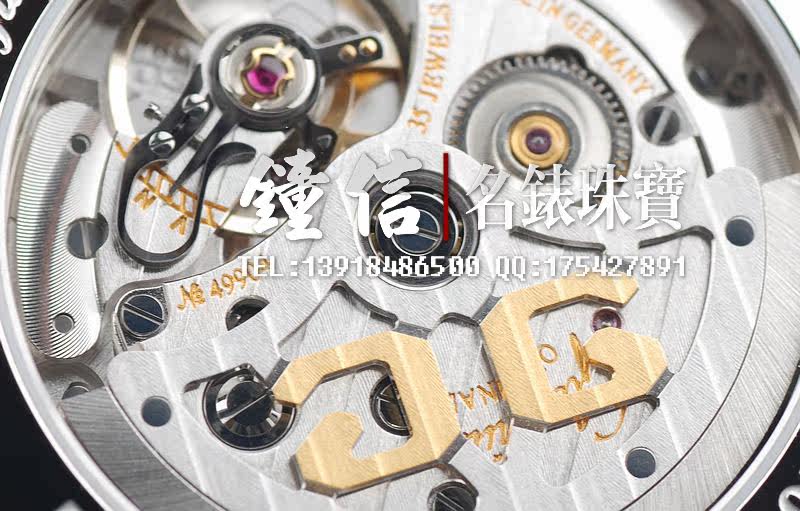 Cal 39自动机芯,五方位校正、鹅颈微调、因加百录避振、补偿螺丝合金摆轮、透底,右边指针式日历,左边短秒,路易安那鳄鱼皮表带