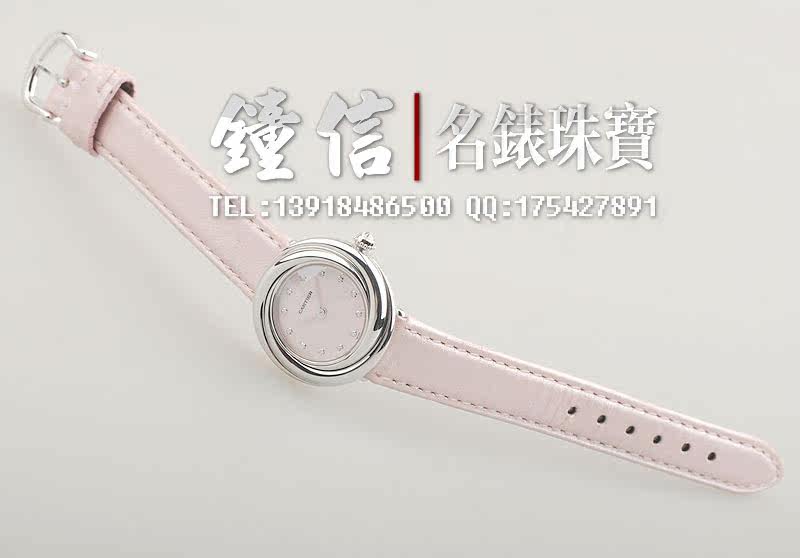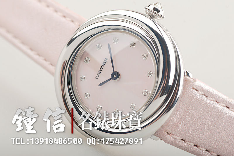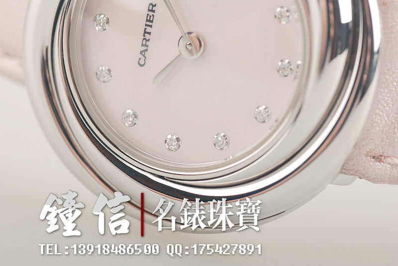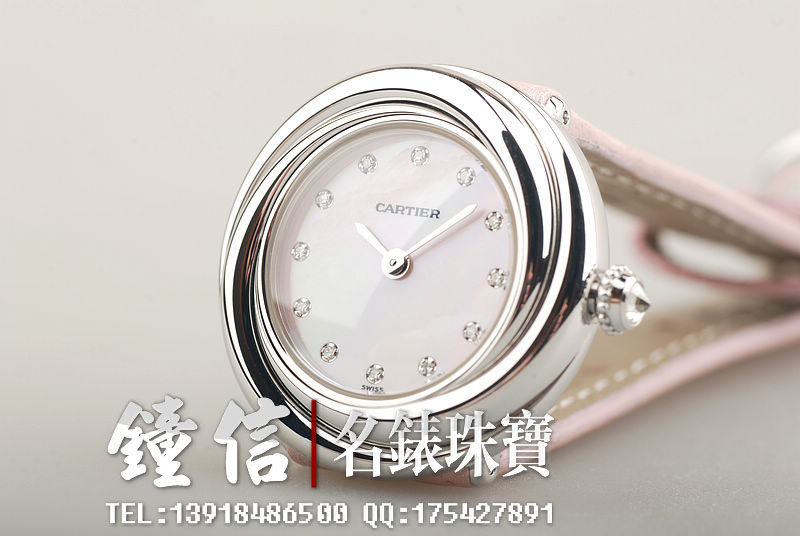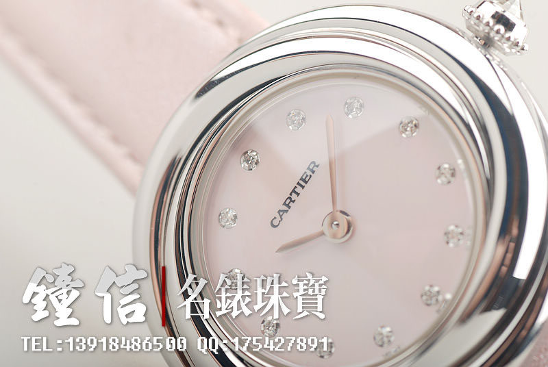 卡地亚小旋风白金镶钻贝母盘石英女表
