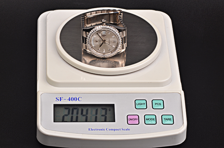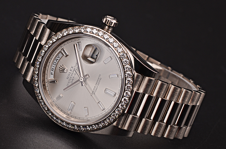 总统型白金40MM银盘镶钻星期日历自动机械男表
