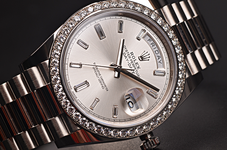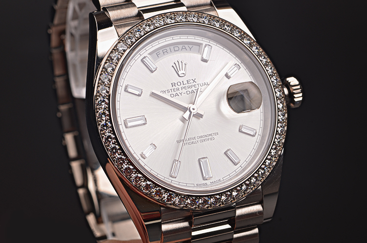 Day-Date 40 White Gold Silver Diamond Dial & Diamond Bezel President Bracelet 系列