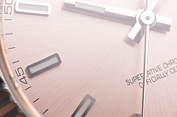 劳力士引以为傲的3135自动机械机械机芯,代表着精准,稳定,可靠。50小时动力储备,31钻,摆频28800。日历显示,瑞士天文台及劳力士双重认证,螺母摆轮调节系统、无卡度Breguet游丝、KIF防振器。走时状态极嘉。