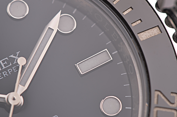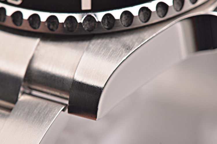 904L精钢表壳及链带,可微调折叠式搭扣。黑色陶瓷旋转计时表圈。蓝宝石水晶镜面,立体黑色表盘,夜光奔驰指针及刻度,3点位放大镜日历,旋入式防水表冠。口径40MM*13MM。防水300M。