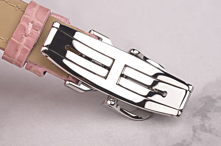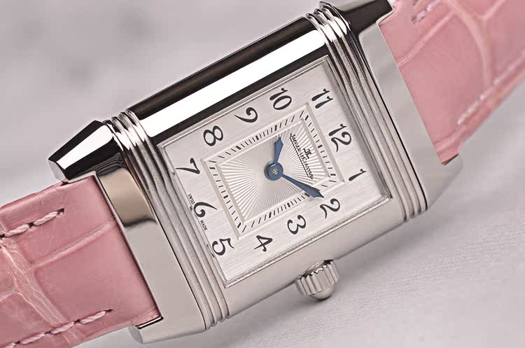 精钢表壳及双向折叠表扣,后配全新粉色鳄鱼皮表带。蓝宝石水晶镜面,黑白双面表盘,白色面蓝钢指针搭配黑色阿拉伯数字刻度,黑色面为太阳纹表盘,表框原厂镶嵌32颗hao华天然美钻,共计约0.22克拉。口径33.2MM*20.7MM*8.3MM,相当于圆表29MM左右大小。防水30M。