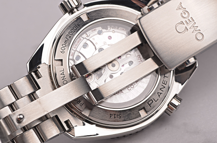 精钢表壳及链带,按压式折叠表扣。单向可旋转黑色陶瓷旋转计时表圈。蓝宝石水晶镜面及底盖,立体黑色表盘,夜光刻度及指针,3点位日历窗口,旋入式防水表冠,表壳侧面10点位排氦气阀装置。口径42MM*16MM,防水深达600M。