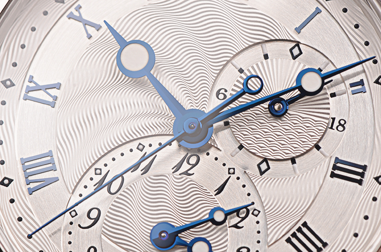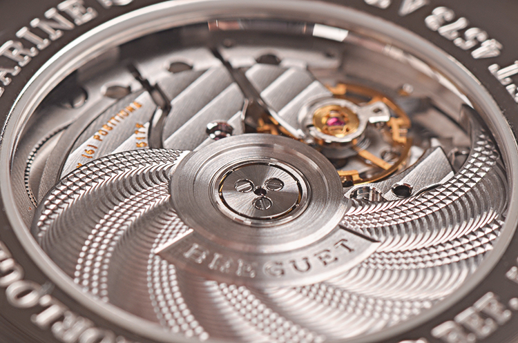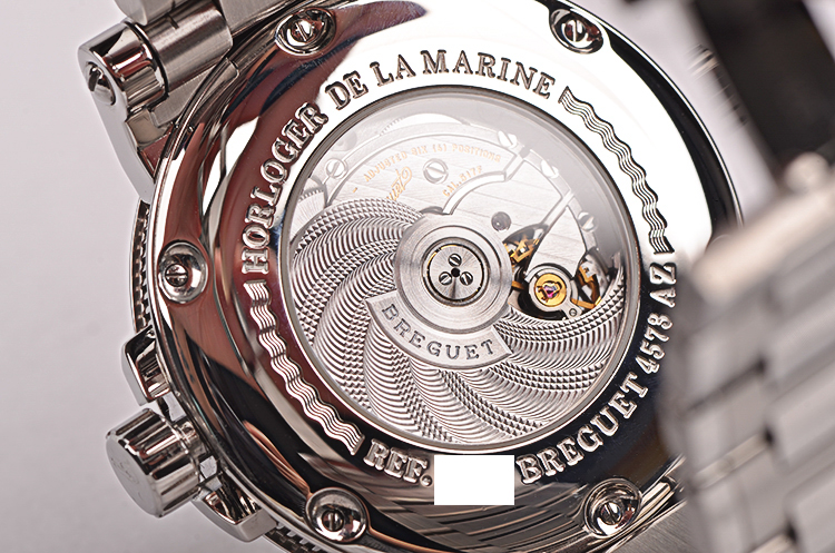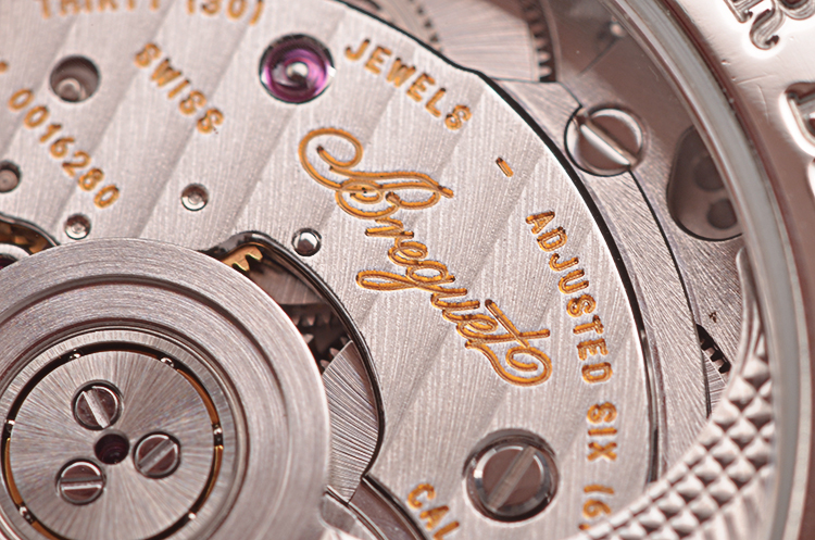 宝玑自产CAL.517F型机芯,自动机械,极其精致日内瓦条纹打磨,倒角抛光修饰。30钻,摆频28800,6方位校正机芯,机芯独立签署,动力储存约72小时(3天链),走时状态极嘉。