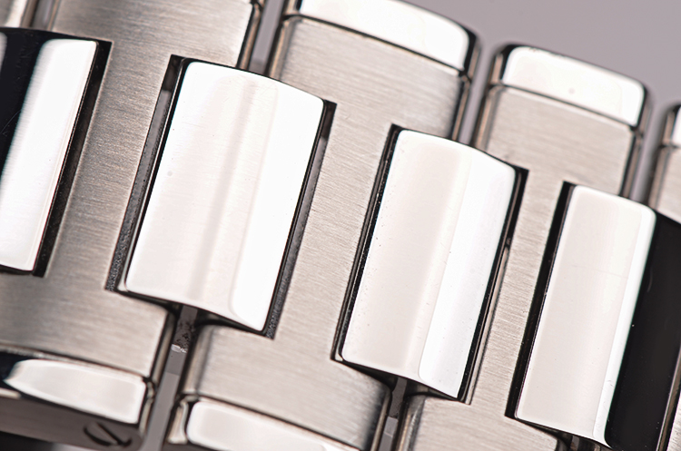 精钢表壳及链带,按压式双向折叠式表扣。蓝宝石水晶镜面及底盖,立体白金镀银表盘,双时区、昼夜显示及日历功能。蓝钢夜光刻度及指针,口径42MM*12.25MM,防水100M。