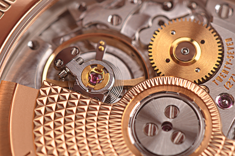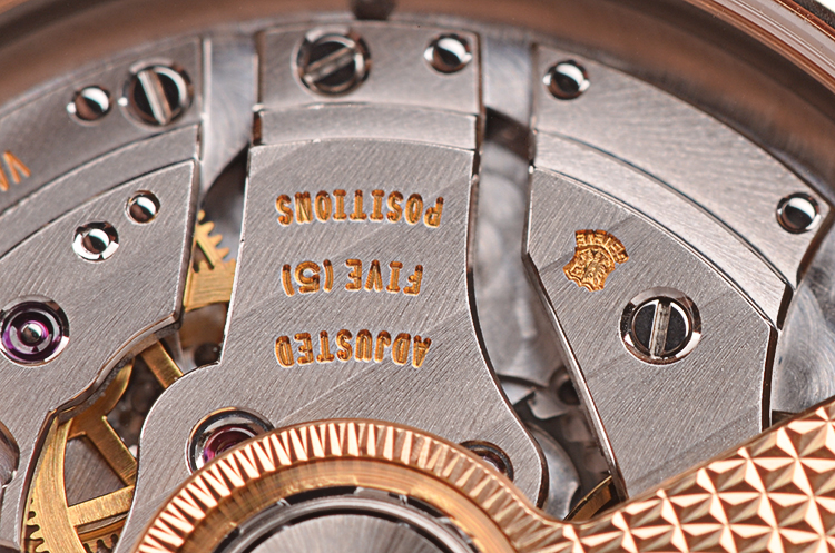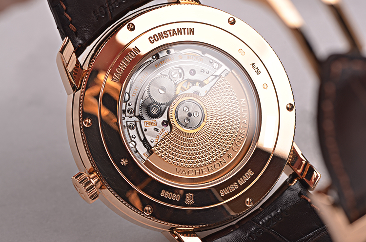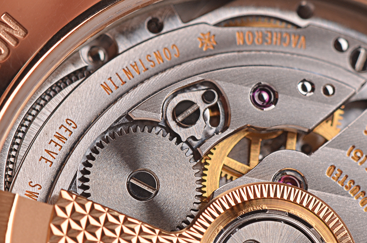 VC自产的CAL.2460WT机芯,自动机械,由255个零件组成,27钻,摆频28800,22K玫瑰金镌刻自动摆陀,日内瓦印记,动力储备约40小时,走时状态极嘉。