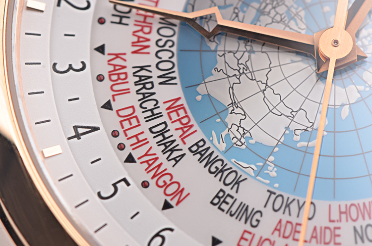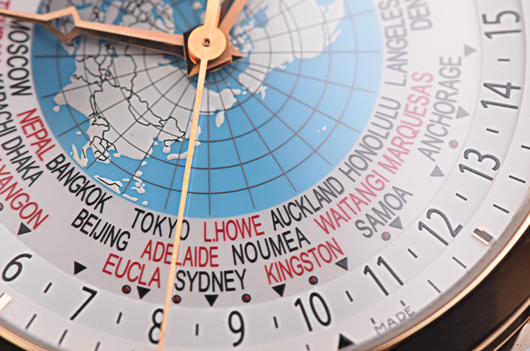 此枚腕表可显示全球37个时区的时间,正装与休闲皆宜,好一个隐藏于袖口的微观世界。