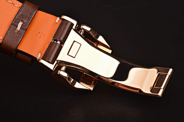 18K玫瑰金表壳及折叠式表扣,圣伯纳狗头印记。后配全新棕色牛皮表带。蓝宝石水晶镜面及底盖,立体玫瑰金色表盘,玫瑰金夜光刻度及指针。12点位南北半球月相显示,(理论上577.5年后,才需将手表交给制表师调整一天的误差,比普通月相精准度大大提升。)9点位指针式星期显示及独立小秒针,6点位指针式月份显示,7点位阿拉伯数字排列式年份显示,3点位指针式日历显示及7天动能储备显示。口径48MM*16MM。旋入式防水洋葱头表冠。防水60M。