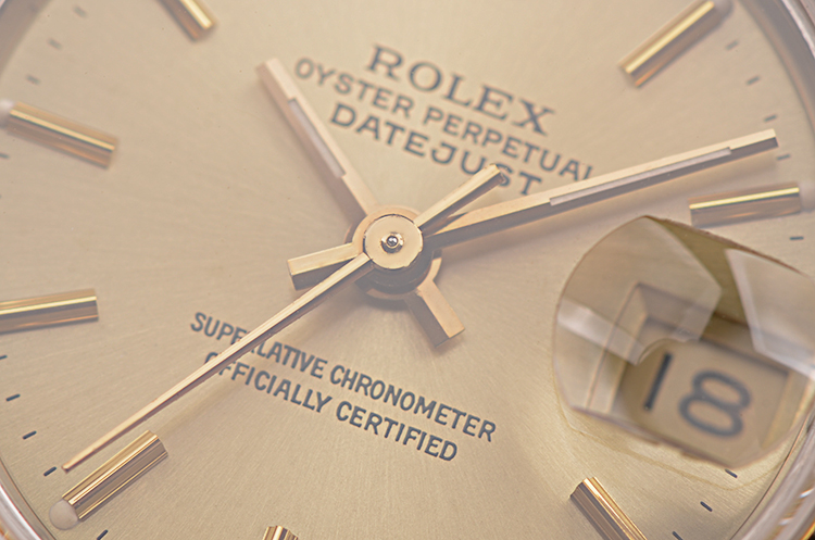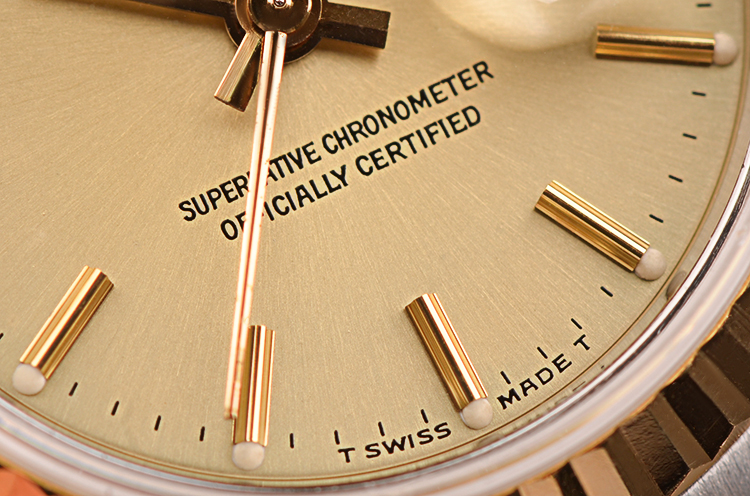 劳力士自产CAL.2135型机芯,自动机械,瑞士天文台认证,29钻,摆频28800,动力储存约40小时。走时状态极嘉。