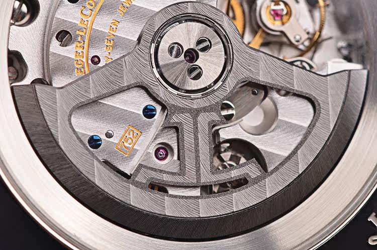 积家自产CAL.752A型机芯,自动机械,极其精致日内瓦条纹打磨,由274个零件组成,37钻,摆频28800,新款LOGO镂空自动转陀,动力储存约65小时,走时状态极嘉。