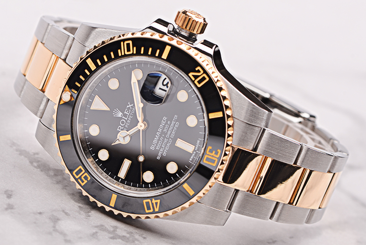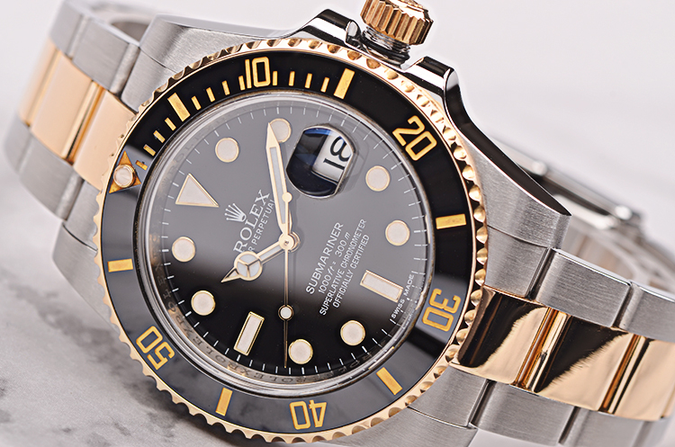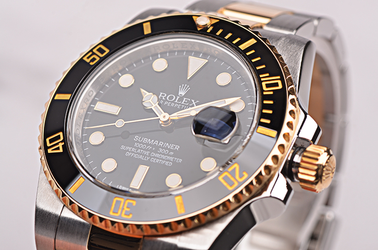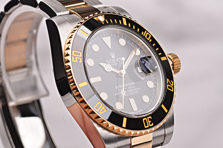 SUBMARINER STEEL & 18K YELLOW GOLD BLACK ON BLACK AUTOMATIC WATCH