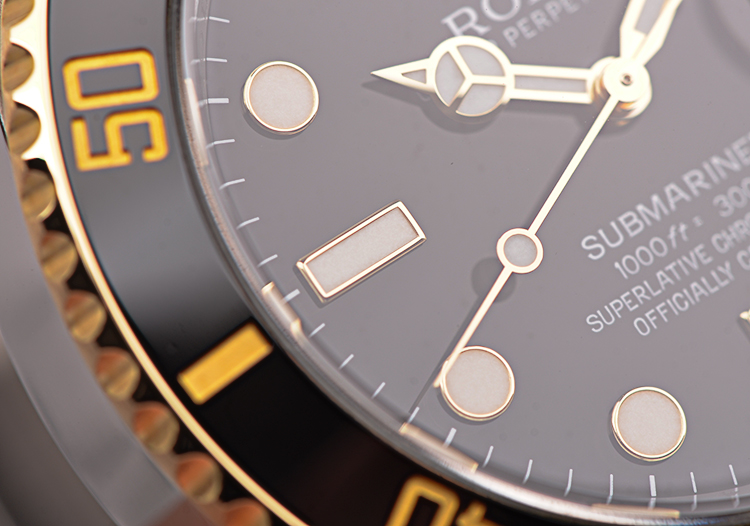 18K黄金及904L精钢表壳及链带,可微调折叠式搭扣。18K黄金及黑色陶瓷计时表圈。蓝宝石水晶镜面,立体黑色表盘,夜光奔驰指针及刻度,3点位放大镜日历视窗。旋入式防水表冠。口径40MM*13MM。防水300M。