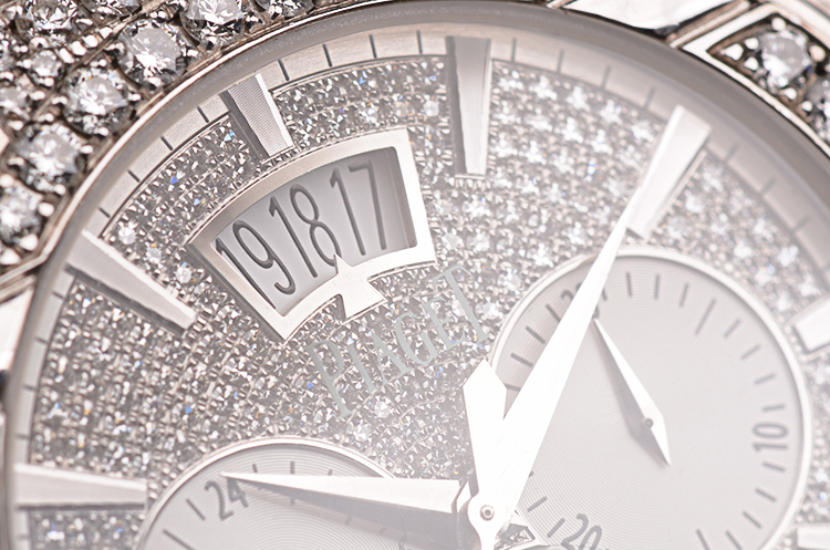 伯爵自产CAL.880P型机芯,自动机械,极其精致日内瓦条纹打磨,倒角抛光修饰。由277个零件组成,35钻,摆频28800,动力储存约50小时。走时状态极嘉。