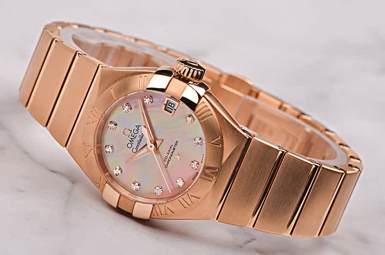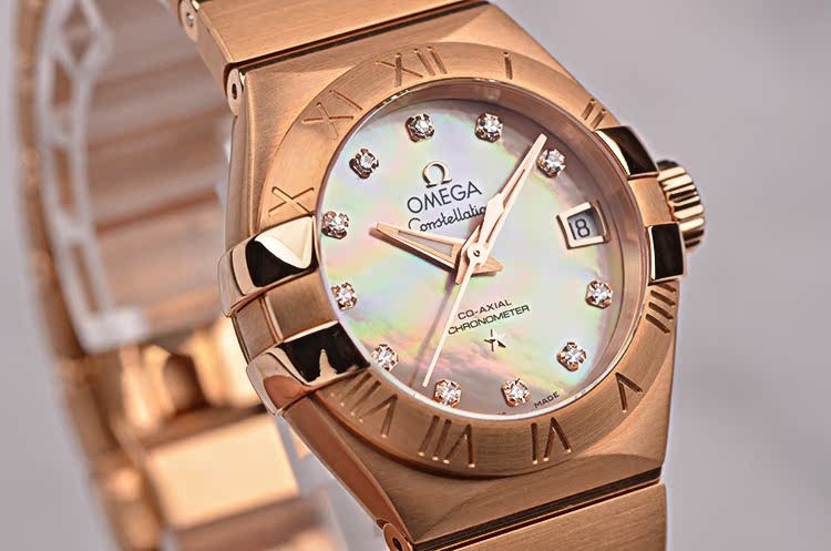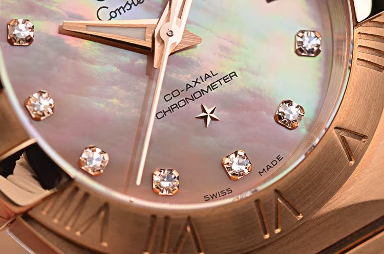 星座系列整体玫瑰金棕色贝母面刻度钻27MM自动女表