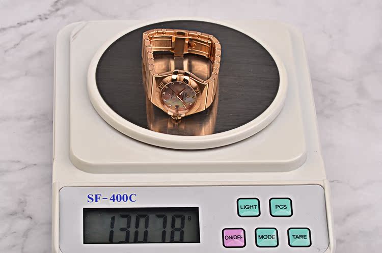 全新未使用品,原厂底盖膜未撕。整表重约130克,用金扎实。