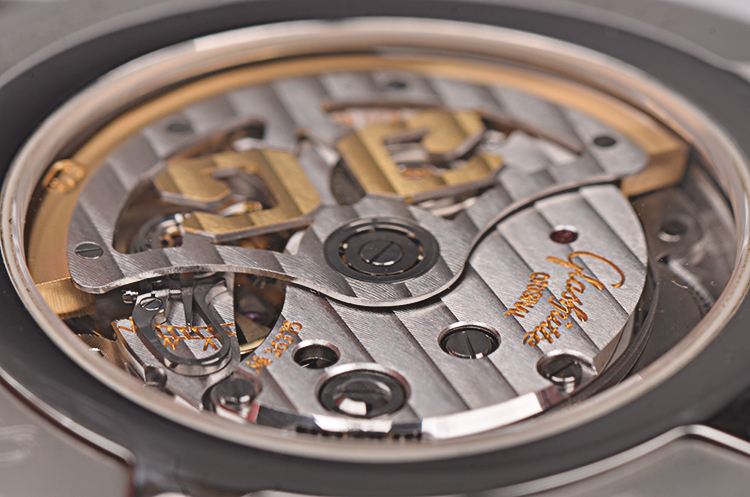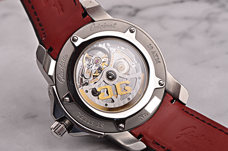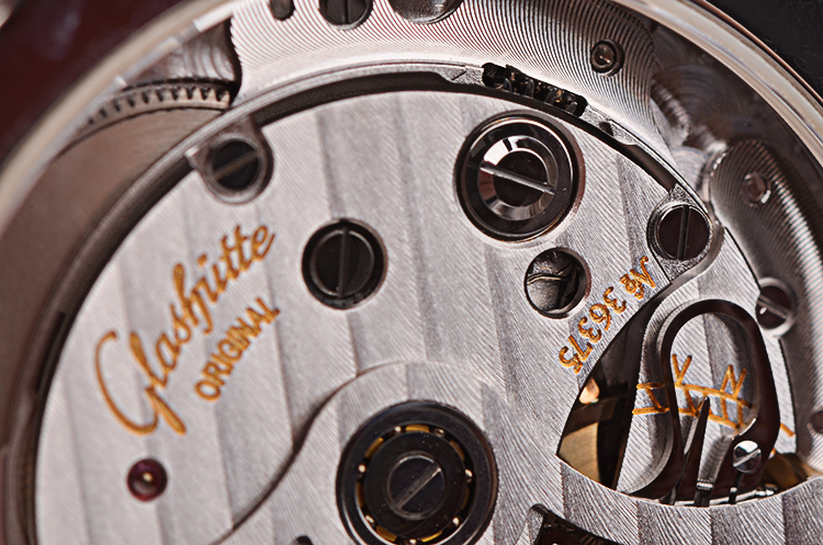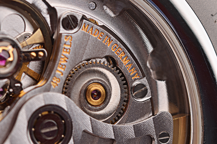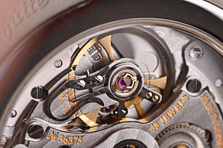 GO自产的CAL.39-57型机芯,自动机械,万年历及世界时等复杂功能极新。极其精致人手条纹打磨,倒角抛光修饰,德式3/4大甲板机芯,鹅颈微调,21K金边配重镂空自动陀,48钻,摆频28800,机芯有独立签署。动力储存约40小时。走时状态极嘉。