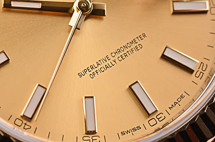 劳力士自产CAL.3235型机芯,自动机械,瑞士天文台认证精密时计(COSC),顺磁性蓝色Parachrom游丝;高性能Paraflex缓震装置,藉恒动摆陀作双向自动上链,每天正负两秒以内(机芯装进表壳后),摆频28800,动力储存约70小时,走时状态极嘉。