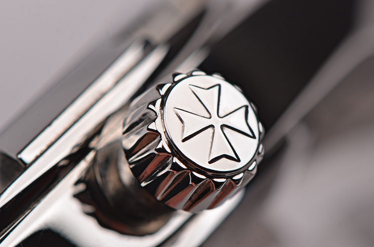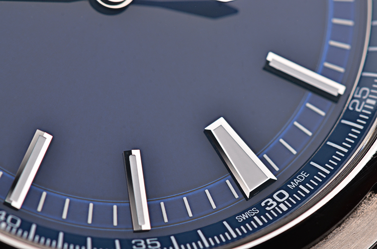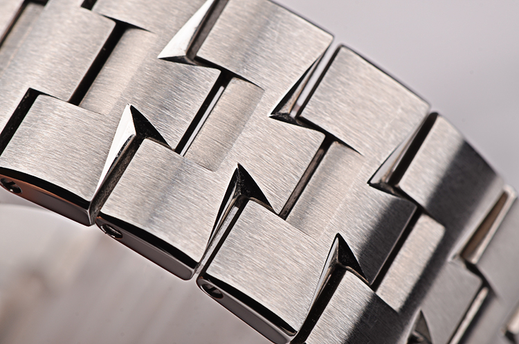 精钢表壳及立体三角链带,按压式双向折叠表扣。另有一条蓝色全新鳄鱼皮表带,一条蓝色原装橡胶表带,一枚原装精钢按压式折叠扣(共计3条原装带,一枚原装折叠扣)。蓝宝石水晶镜面及底盖,立体蓝色表盘,夜光刻度及时分针,大三针设计,3点位日历视窗。旋入式防水表冠。口径41MM*11MM,防水150M。