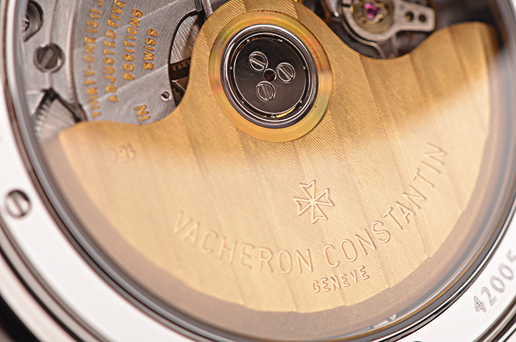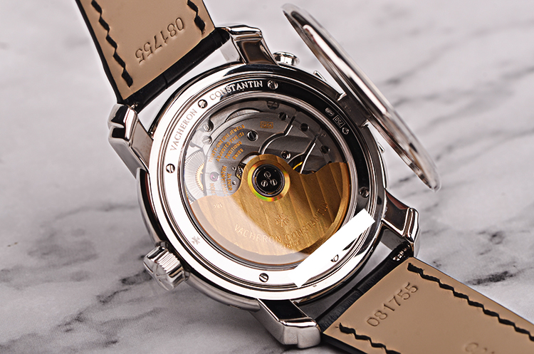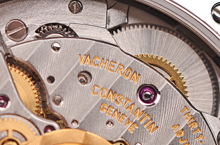 VC自产CAL.1206型机芯,自动上链,极其精致日内瓦手工条纹打磨,31钻,28800摆频,5方位校正,天文台认证机芯有独立签名编号,18K黄金自动摆陀,动力储备约65小时。走时状态极嘉。
